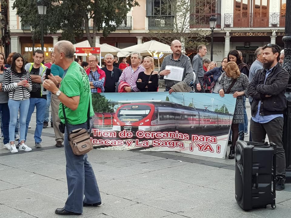 La lucha por la llegada del tren a La Sagra lleva décadas vigente, y tal como nos afirma Ángel la movilización ha ido cayendo progresivamente ya que son muchos años sin cambios ni soluciones a la problemática. Sin embargo, el portavoz cree que la responsabilidad no debe recaer en los/as ciudadanos/as sino en los ayuntamientos y alcaldes/as de la comarca, ya que tienen la llave para movilizar a la gente y sólo lo hacen en campaña pre-electoral. “No es cuestión de reunirte con Fomento varias veces al año, sino de movilizar a tu pueblo y acordarte siempre de lo necesario que es el tren para la población, no sólo cada 4 años.” El portavoz comenta que desde la plataforma han conseguido que se tenga en consideración una petición escrita a Fomento recientemente, pero ésta fue modificada por los/as diferentes representantes de La Sagra Alta y Baja para que no fuera una petición exclusiva para la llegada del servicio ferroviario, ya que se aceptarían también medidas como un carril extra en la A-42 o autovías comarcales, dejando de ser el tren la exigencia prioritaria.