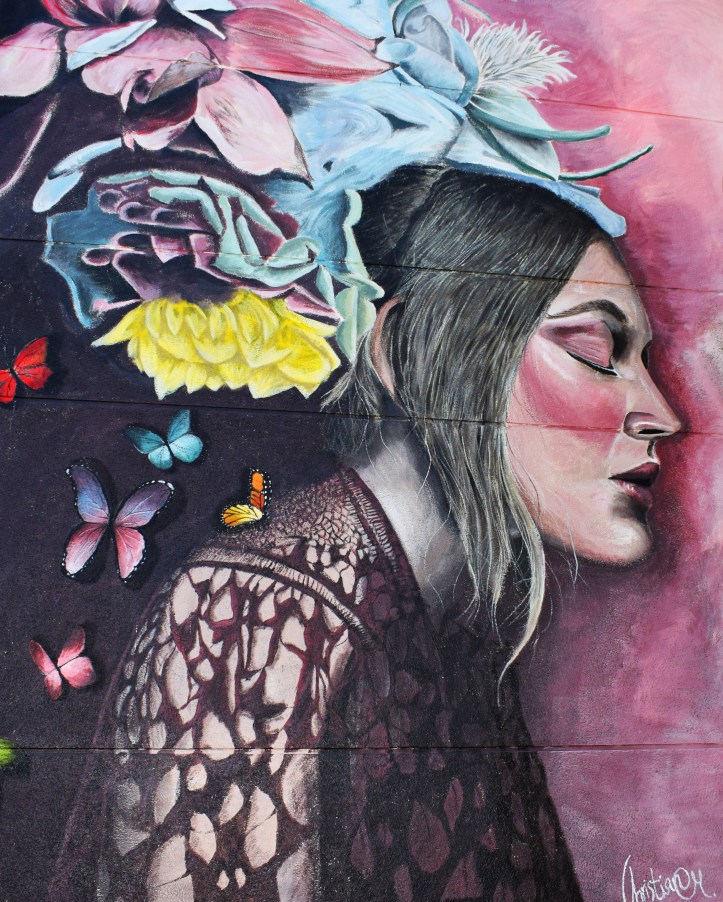 A lo largo de 2018, cuando «el papel se me quedaba pequeño», saltó al gran formato: el mural. Dio vida, en una de las paredes de su pueblo, a la imagen de una anciana tatuada. Ésta fue su primera experiencias que se convirtió en arte efímero por el efecto de la lluvia al utilizar el tipo de material equivocado. Pero, como él mismo declara «aprendo de mis errores», y, como buen autodidacta, no ha vuelto a ocurrirle. Desde entonces, han sido varios los muros en los que ha dejado su huella. Una de las obras más reseñables la realizó durante la cuarentena domiciliaria, en su propio jardín, con el ánimo de poner la mirada en la parte positiva de la vida y dejar de lado todo lo que veía en la televisión. Durante 18 días este artista se encargó de realizar el boceto en papel, cuadricular la imagen, montar los andamios y llevar a cabo la obra.