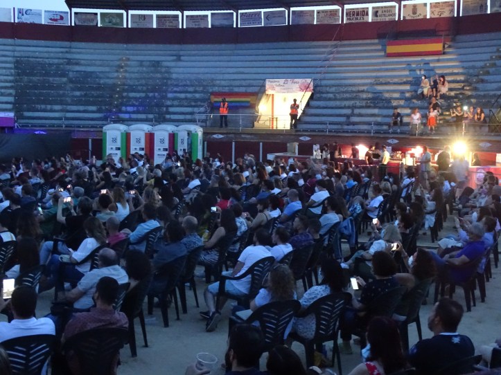 Era acercarse a la Plaza de Toros de Esquivias y sentir que no era una noche más. Se respiraba alegría y ganas de festejar. Parecía que lo más importante no era que Amaral tocara esa noche sino asistir a un cambio de paradigma, a un hito que unía a cada uno de los asistentes. Sin embargo esto no quita que la noche del sábado estuviera repleta de fans incondicionales de la banda. Además de vecinos sagreños, cientos de personas de Madrid o Toledo acudieron para revivir un show que todavía no han podido disfrutar en sus ciudades.