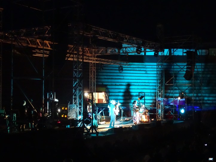 Una vez dentro, los reencuentros en la grada retrasaban el momento al que todo espectador debía enfrentarse, posar el trasero sobre el asiento hasta que acabara el concierto (claro que uno podía ir al baño). Minutos después de las 22:00 Amaral salía al escenario sin mediar palabra, directos a la interpretación. Como segundo tema elegían el archiconocido «El universo sobre sí» para calentar al público antes de dedicarles unas palabras: «Os echábamos muchísimo de menos, vuestro feedback, vuestro cariño. Es muy emocionante teneros aquí hoy en el primer día que empezamos a dar pasitos hacia adelante y estar en el escenario celebrando la vida, el amor y la suerte que tenemos».